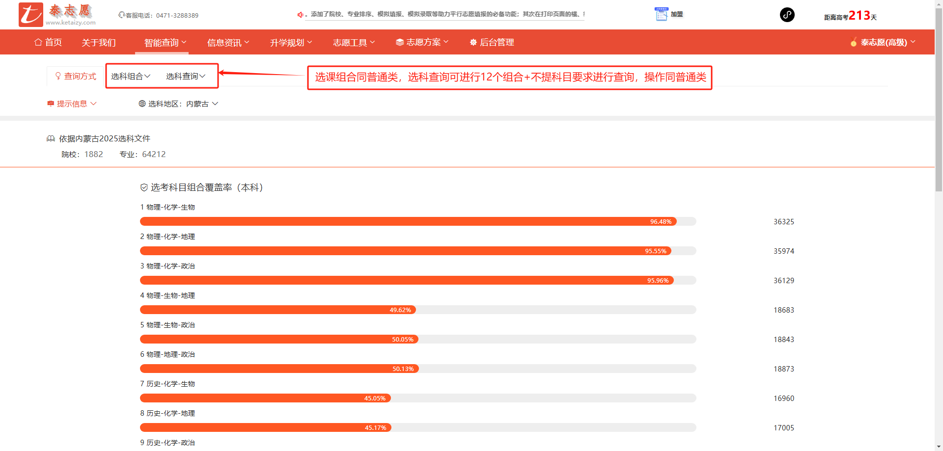 未登录状态下,只能查阅普通文理和新高考部分数据,注册时,需选择你的科类类别。